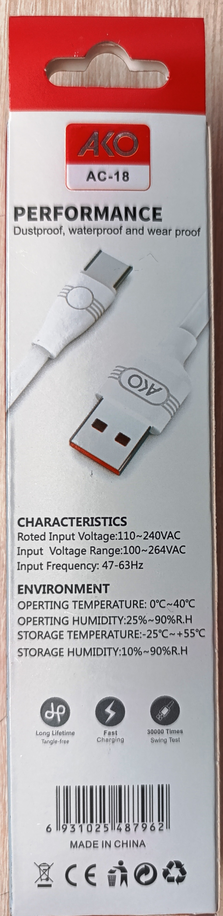 کابل شارژ تایپ سی AKO AC-18 تایپ سی اصلی