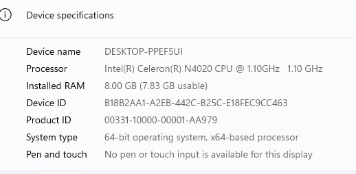 سایر توضیحات پردازنده مرکزی (CPU): intel (R) celeron (R) N4020