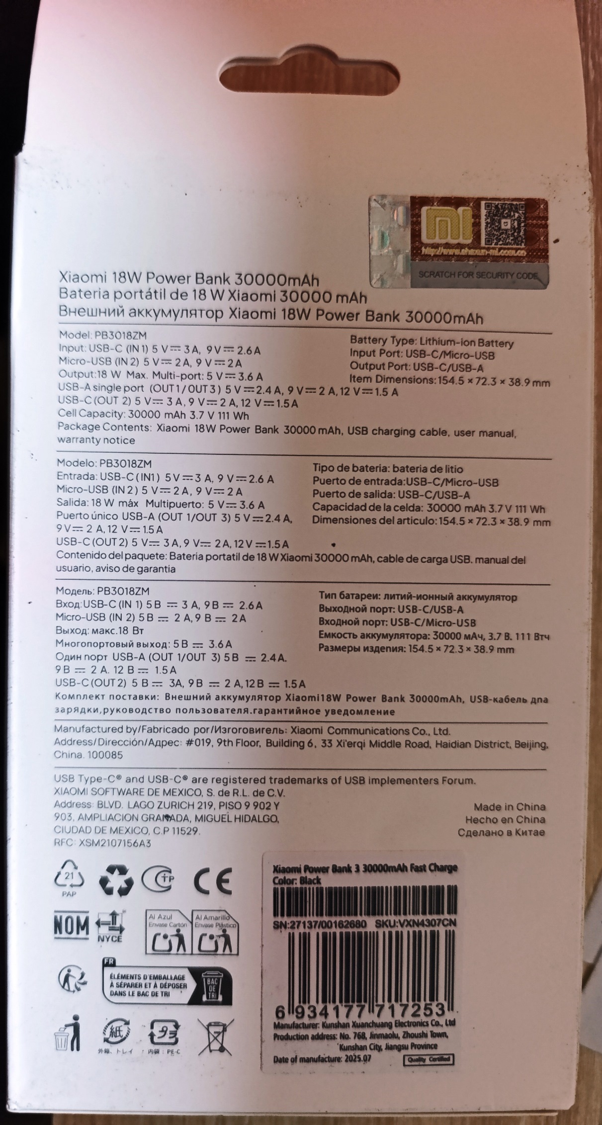 پاور بانک اورجینال شیائومی 30000 هزار فست شارژ