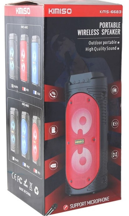 گوش دادن به موسیقی در همه جا! کمپانی کیمیسو یکی از کمپانی های کهنه کار و قدیمی در زمینه تولید ابزارهای صوتی است. کیمیسو از جمله شرکت هایی است که خود را با نیازهای روز مشتریان وفق میدهد. از همین رو یکی از شرکت هایی که در سال های اخیر به نیاز کاربران در خصوص وجود یک اسپیکر که قابلیت حمل و نقل آسانی داشته باشد پاسخ داده است. اسپیکر بلوتوث یکی از وسایلی به شمار می رود که به طور گسترده در منزل و محل کار، در مهمانی و یا سفر استفاده می شود. وسیله ای که می تواند لیست آهنگهای مورد علاقه تان را تا ساعتها بخواند و بنوازد. اسپیکر کیمیسو مدل KMS-6683 یکی از نمونه های بسیار با کیفیت اسپیکر بلوتوث است که در سه رنگ مشکی ، آبی و قرمز طراحی شده است. اسپیکرکیمیسو مدل KMS-6683 ظاهری استوانه ای شکل دارد با دسته قابل حمل که جابجایی آن را بسیار راحت کرده است. درون این اسپیکر باتری قابل شارژی به کار رفته است که با استفاده از پورت میکرو یو اس بی با جریان و ولتاژ 5V/1A این اسپیکر شارژ می شود. در قسمت بالایی اسپیکر دکمه های کنترلی وجود دارد که می توانید از آن برای روشن و خاموش کردن اسپیکر، کم و زیاد کردن صدا، روشن و خاموش کردن بلوتوث، پخش و یا قطع موسیقی استفاده نمایید. و اما جذابیتی که همه اسپیکرهای کیمیسو دارند، وجود رقص نور به هنگام پخش موسیقی است. یکی از ویژگی های جالب این اسپیکر، قرار داشتن یک میکروفون در کنار اسپیکر می باشد. در اینصورت دیگر لازم نیست برای یک میکروفون هزینه بیشتری بپردازید.