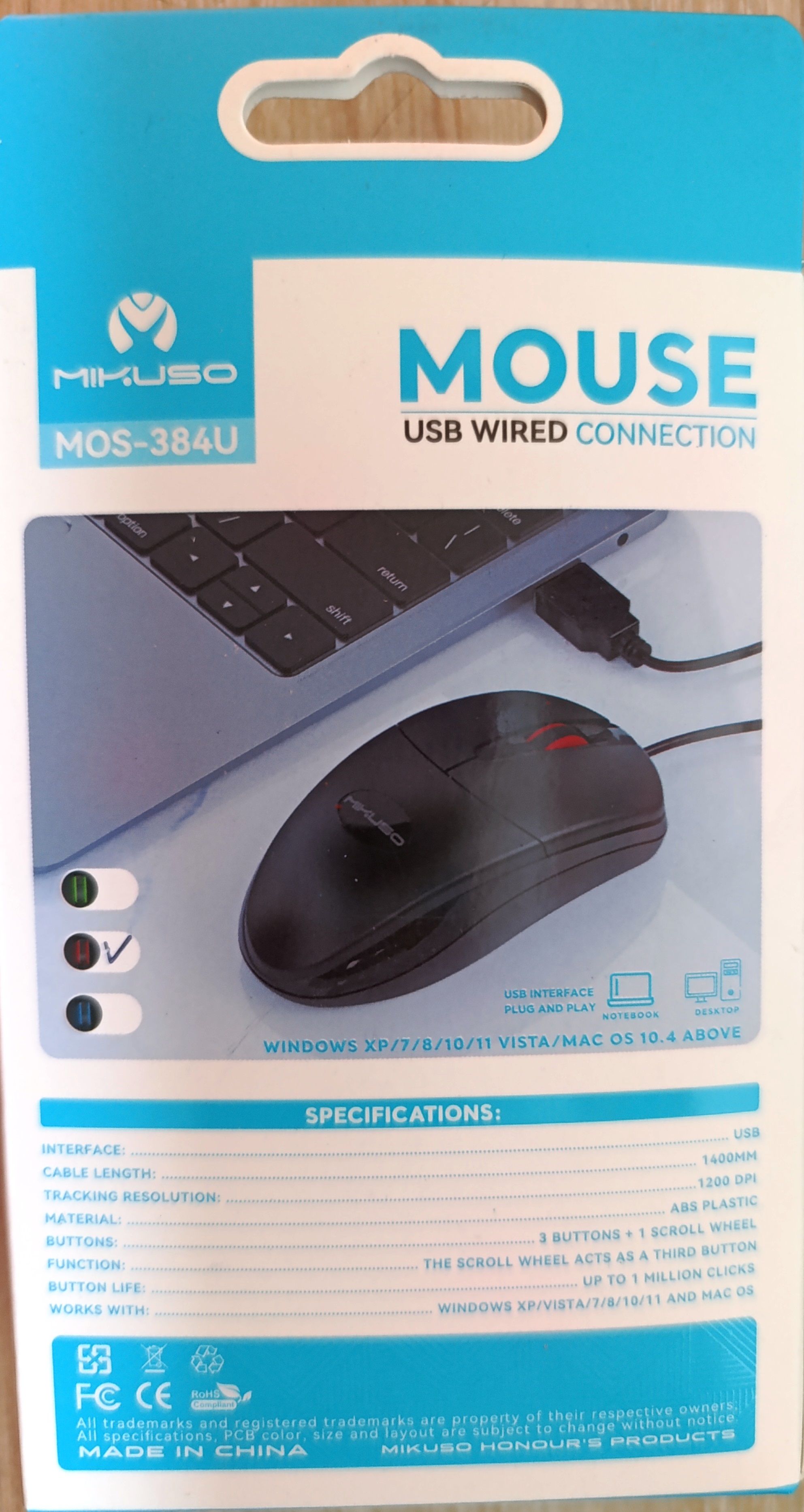 این محصول به صورت سیمی به طول 120 سانتیمتر از جنس روکش پلاستیکی مقاوم و از طریق درگاه USB به سیستم متصل می شود. سنسور این ماوس از نوع اپتیکال بوده و حداکثر دقت آن 1200 نقطه بر اینچ می باشد .