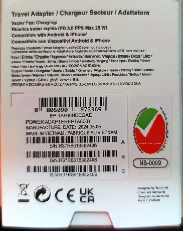 شارژر دیواری 25 وات سامسونگ مدل EP-TA800 نه تنها سریعترین دستگاههای سامسونگ را به سرعت شارژدهی میکند، بلکه با مدلهای دیگر هم سازگاری خوبی دارد. شارژها از مهم ترین عوامل طولانیتر شدن عمر گوشی و باتری هستند، به طوری که اگر از شارژر مناسب و مرغوب برای گوشی خود استفاده نکنید میتواند آسیبهای جدی به گوشی شما وارد کند. اگر به دنبال یک شارژر دیواری قدرتمند و سریع برای شارژ کردن دستگاهتان میگردید، ما به شما خرید شارژر 25 واتی سامسونگ را پیشنهاد میدهیم. برای دستگاههای سازگار با استاندارد PD 3.0 حداکثر شارژ 25 وات دریافت خواهید کرد، در حالی که دیگر دستگاهها با سرعتی که میتوانند اداره کنند شارژ میشوند. وزن این شارژر دیواری 45 گرم است و درگاه ارتباطی آن از نوع USB Type-C است. لازم به ذکر است این محصول بدون کابل است و باید به صورت جداگانه کابل مناسب را تهیه کنید.