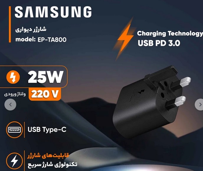 شارژر دیواری 25 وات سامسونگ مدل EP-TA800 نه تنها سریعترین دستگاههای سامسونگ را به سرعت شارژدهی میکند، بلکه با مدلهای دیگر هم سازگاری خوبی دارد. شارژها از مهم ترین عوامل طولانیتر شدن عمر گوشی و باتری هستند، به طوری که اگر از شارژر مناسب و مرغوب برای گوشی خود استفاده نکنید میتواند آسیبهای جدی به گوشی شما وارد کند. اگر به دنبال یک شارژر دیواری قدرتمند و سریع برای شارژ کردن دستگاهتان میگردید، ما به شما خرید شارژر 25 واتی سامسونگ را پیشنهاد میدهیم. برای دستگاههای سازگار با استاندارد PD 3.0 حداکثر شارژ 25 وات دریافت خواهید کرد، در حالی که دیگر دستگاهها با سرعتی که میتوانند اداره کنند شارژ میشوند. وزن این شارژر دیواری 45 گرم است و درگاه ارتباطی آن از نوع USB Type-C است. لازم به ذکر است این محصول بدون کابل است و باید به صورت جداگانه کابل مناسب را تهیه کنید.