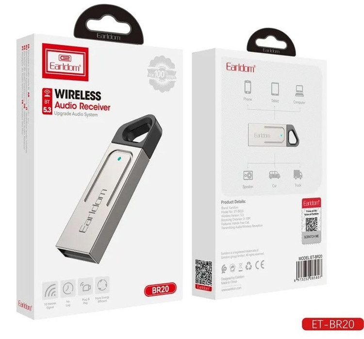 شرکت ارلدام، یک شرکت مدرن تولید کننده لوازم جانبی تلفن همراه مانند هندزفری ، هدست ، بلوتوث ، اسپیکر ، هدفون ، پاوربانک ، شارژر فندکی ، کابل های انتقال دیتا ، شارژرهای دیواری و کابل های انتقال صدا است که دارای محصولاتی با درجه کیفیت عالی و غیرقابل مقایسه با دیگر محصولات تولید شده از مبدا کشور چین است . دانگل بلوتوثی ارلدام مدل BR20 از نوع رابط( USB ) است . دانگل بلوتوثی ارلدام مدل BR20 دارای نسخه بلوتوث 5.3 است ، که کاربران می توانند گوشی موبایل یا گجت های هوشمند که از فناوری بلوتوث پشتیبانی می کنند را به دانگل متصل شده به بلندگو و سیستم پخش خودرو متصل کنند و به موسیقی مورد علاقه خود گوش دهند یا تماس های ضروری خود را با کیفیت صدای بالا پاسخ دهند . بر روی بدنه دانگل بلوتوثی ارلدام مدل BR20 یک عدد LED قرار دارد ، که در زمان اتصال و استفاده از آن روشن خواهد شد . همچنین دارای حفره ای برای اتصال بند می باشد که حمل آن را برای کاربران آسان تر می کن