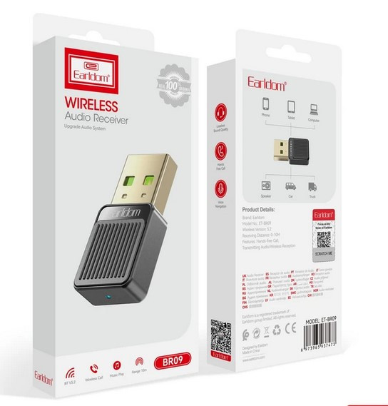 دانگل اورجینال ارلدام مدل Earldom ET-BR09 علاوه بر طراحی و ظاهری زیبا جزء جذاب ترین و پرطرفدارترین محصولات شرکت ارلدام جهت انتقال صدا و موسیقی به دستگاه های فاقد بلوتوث می باشد. دانگل بلوتوث یو اس بی BR09 ارلدام، بدون افت کیفیت و نویز صدا را انتقال می دهد. که شعاع برد آن تا ده متر می باشد. دانگل انتقال صدا ارلدام دارای نسخه بلوتوث 5.2 می باشد که جهت اتصال گوشی موبایل ، تبلت ،لپ تاپ به اسپیکر، پخش صدا اتومبیل و دستگاه های سازگار با USB استفاده می شود